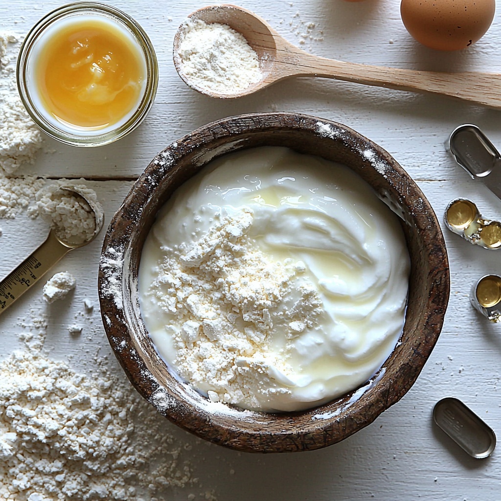 - Mix Dough: In a mixing bowl, combine the self-raising flour and yogurt. Stir until a dough forms, ensuring everything is well incorporated.