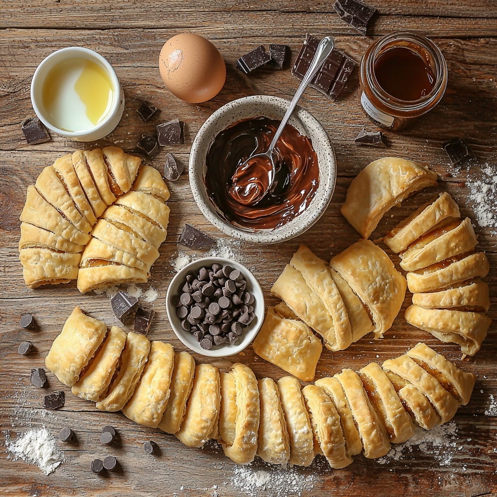 This recipe requires only a handful of ingredients that you likely already have in your kitchen, making it not just delicious but wonderfully simple to whip up. Each element plays a key role in delivering that perfect balance of flakiness, sweetness, and gooey chocolate delight.