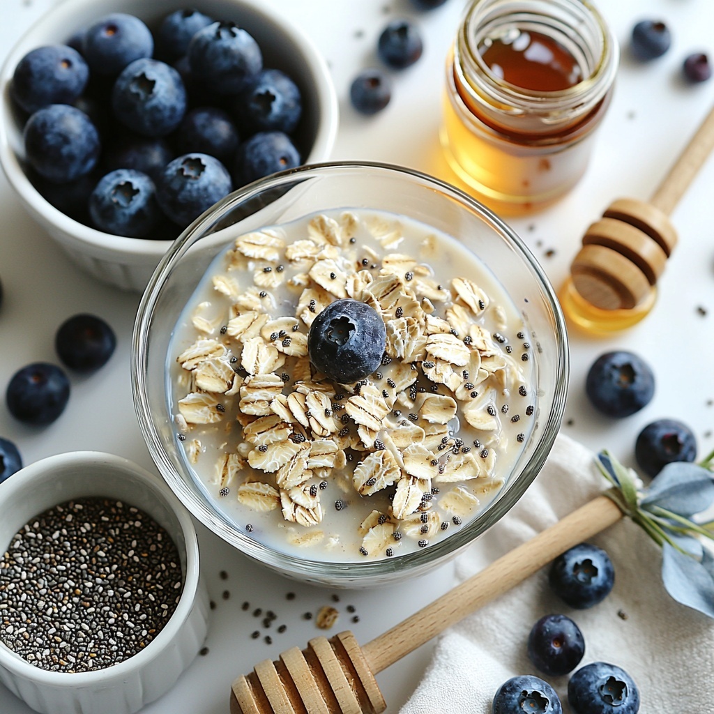 A simple and nutritious Blueberry Overnight Oats recipe that’s perfect for a quick, healthy breakfast. This no-cook dish combines rolled oats, milk, chia seeds, and sweet blueberries, soaked overnight to create a creamy, flavorful meal ready to enjoy straight from the fridge.