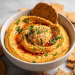 A spicy and flavorful twist on classic hummus, Buffalo Hummus combines creamy chickpeas with tangy buffalo sauce for a perfect appetizer or snack. Garnished with blue cheese crumbles and fresh herbs, this quick 10-minute recipe delivers bold taste with a smooth texture.
