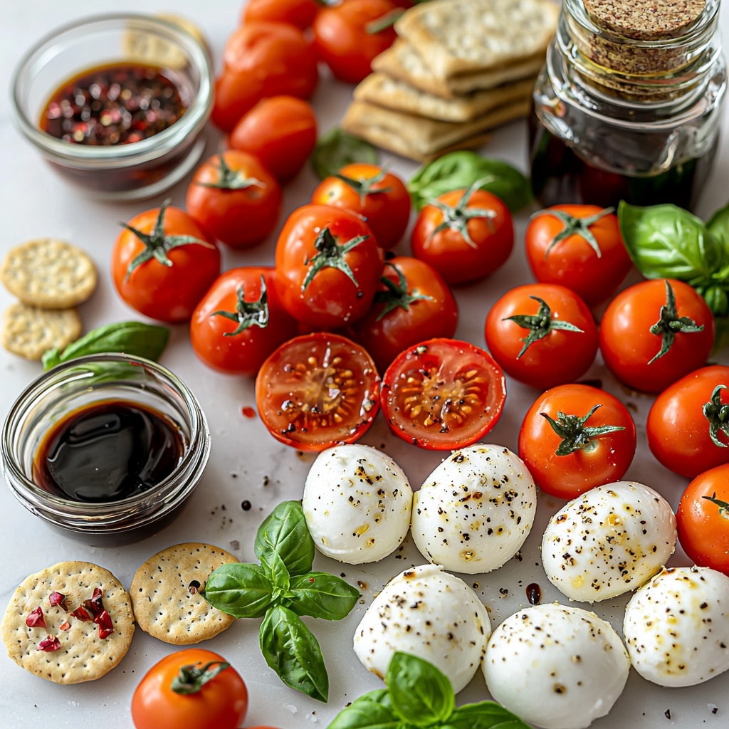 A fresh and flavorful Caprese Dip appetizer combining juicy cherry tomatoes, creamy mozzarella, aromatic basil, and a tangy balsamic glaze. This easy no-cook recipe is perfect for gatherings, served with crusty bread or crackers for a delicious and elegant starter.