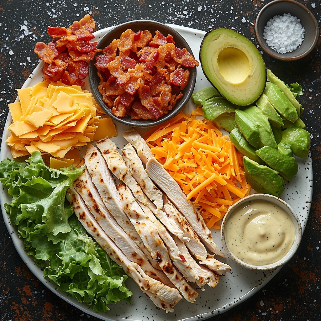 Warm your flour tortillas until they’re pliable, then layer several fresh butter or iceberg lettuce leaves on each one. Spoon generous amounts of the warm chicken, bacon, cheese, and onion mixture on top. Add a few slices of creamy avocado, then drizzle ranch dressing over everything before rolling each tortilla up tightly. These wraps are best enjoyed right away while everything is warm and gooey, but perfect for grabbing on the go too!