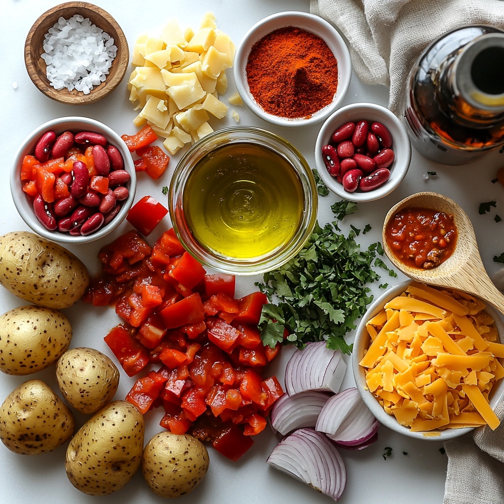 The magic of this Chili Cheese Fries Recipe: The Ultimate Cozy Comfort Food Bash Recipe lies in its simple yet perfectly balanced ingredients. Each one is essential to build layers of flavor and texture, from the crispy fries to the spicy, savory chili that crowns them.