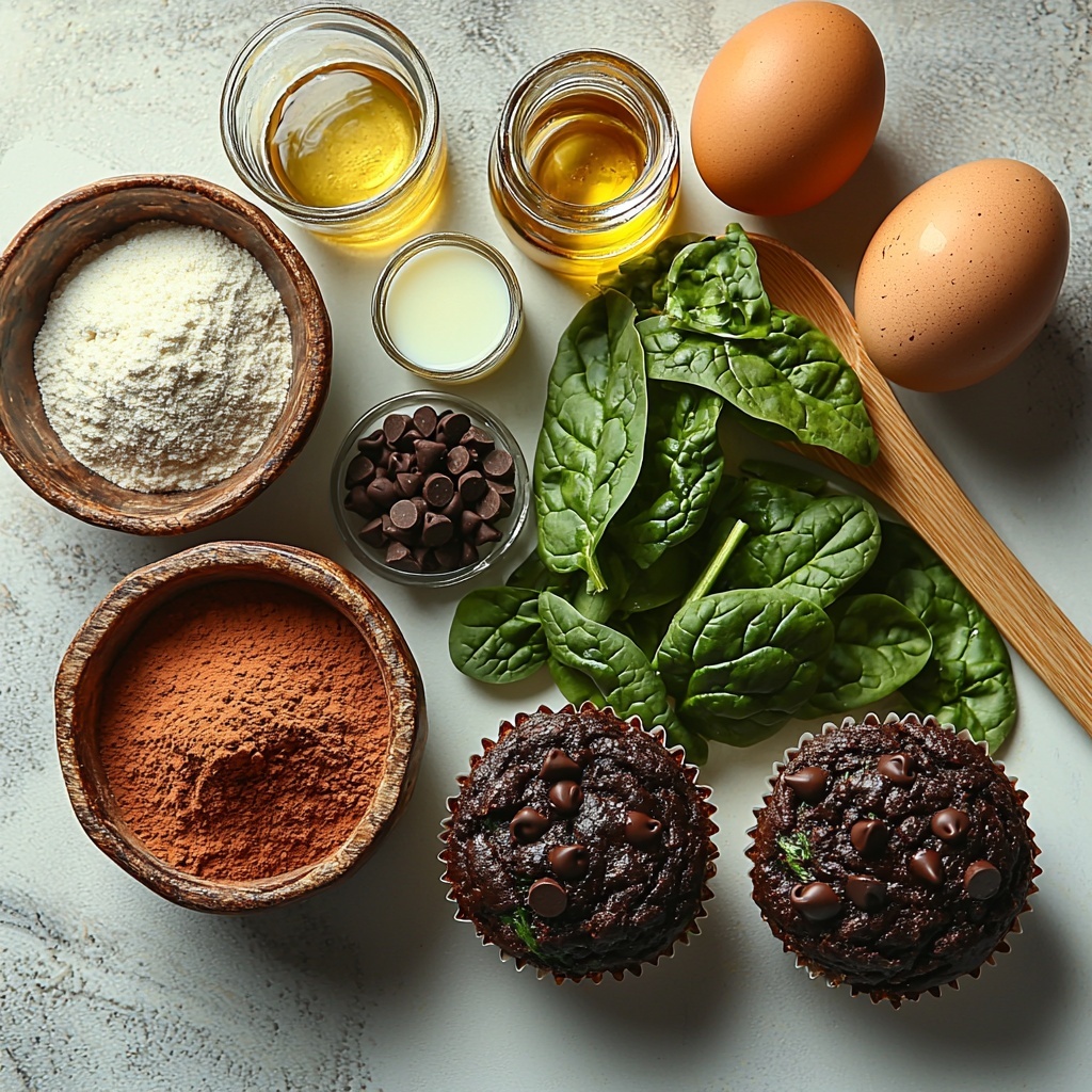 Each ingredient in this recipe has a special role to play, making these muffins wonderfully textured, flavorful, and vibrant. From the cocoa that delivers deep chocolate richness to the fresh spinach that quietly infuses hidden nutrients, this list keeps things simple yet essential.