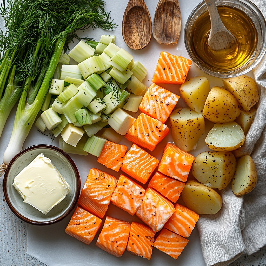 This recipe keeps things beautifully simple but every ingredient plays a crucial role in building the soup’s wonderful depth of flavor and creamy texture. Fresh salmon brings the star protein, butter adds richness, and the broth melds everything into a luscious harmony.
