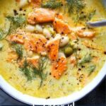 Reheat gently on the stovetop over low heat to avoid overcooking the salmon. Stir occasionally, and if the soup thickens too much, simply add a splash of stock or water to loosen it back up to your preferred consistency.