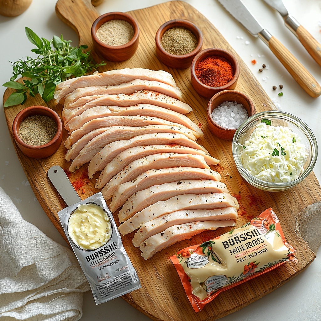 - 1 pound thinly sliced chicken breasts: Tender and perfect for rolling, making the dish easy to assemble and cook evenly.