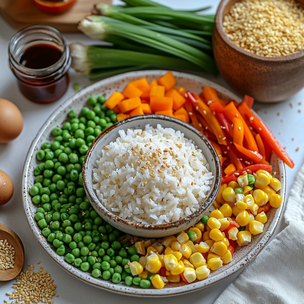 Before serving, scatter sliced green onions and toasted sesame seeds over the top. These garnishes are not only visually appealing but add fresh pops of flavor and subtle crunch. Serve your Easy 20-Minute Veggie Fried Rice That Bursts with Flavor Recipe hot and watch how quickly it disappears!