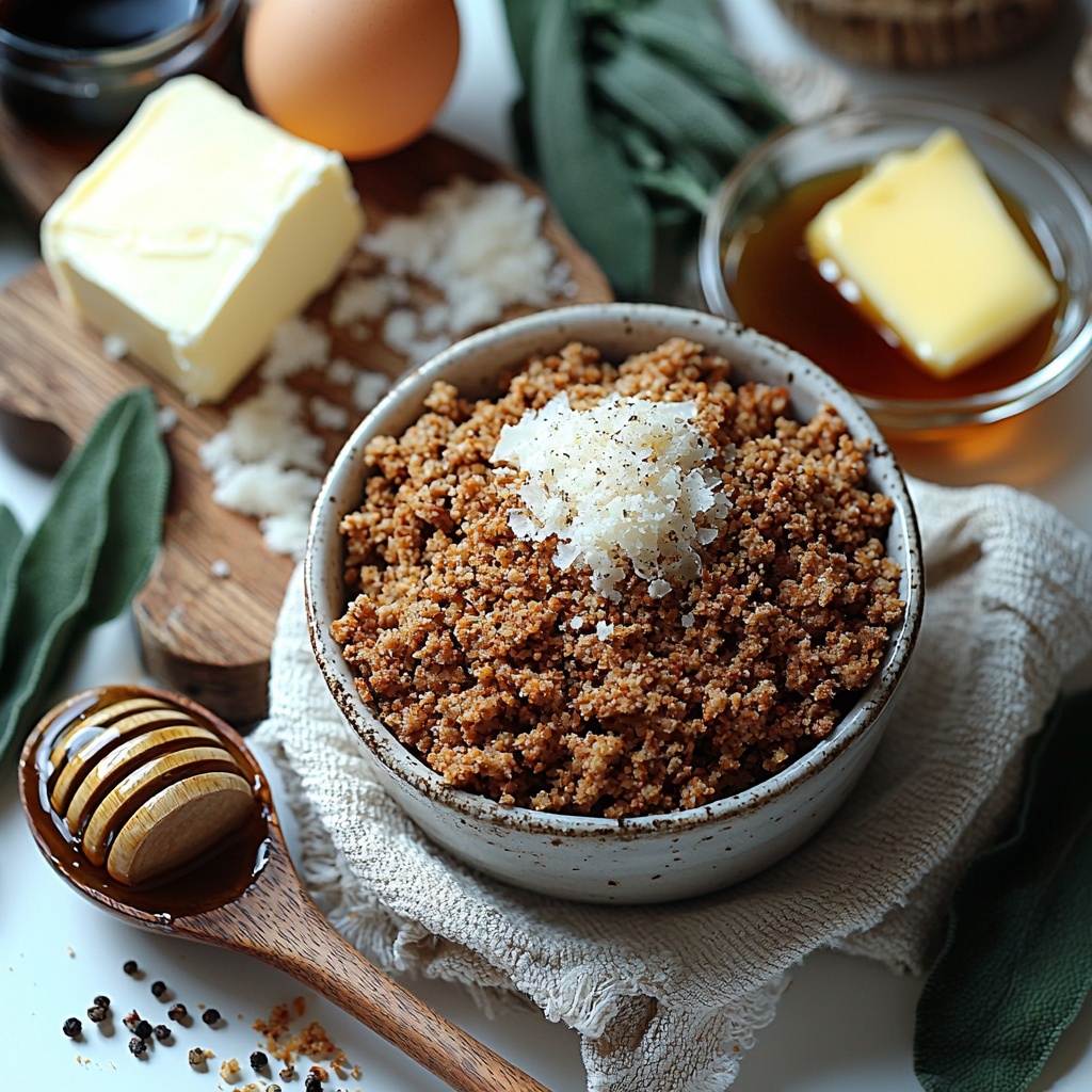 These Honey-Glazed Turkey Meatballs with Sage Butter combine tender, juicy turkey meatballs baked to perfection and tossed in a fragrant sage-infused butter glaze. Sweet honey and savory soy sauce blend seamlessly with aromatic herbs and Parmesan, creating a delightful dish perfect for a comforting family meal or elegant dinner.