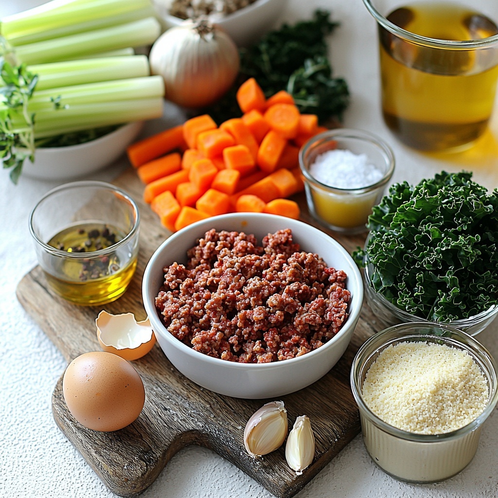 - Add Kale and Meatballs: Stir in the chopped kale and cook for an additional 2 minutes until wilted. Then add the baked meatballs to the soup and simmer for 1 more minute to heat through.