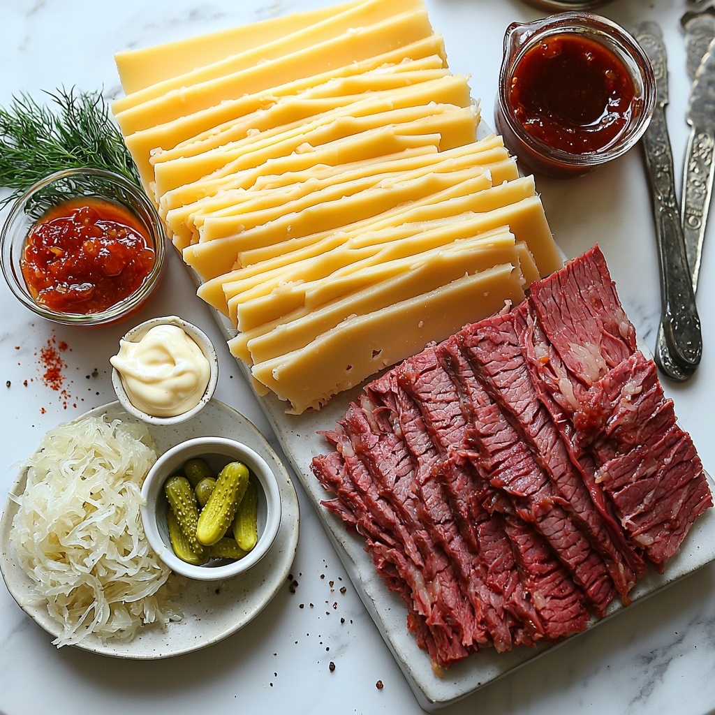 • Sliced corned beef, 8 ounces: Or pastrami if you prefer, adding that hearty, savory flavor that’s essential.