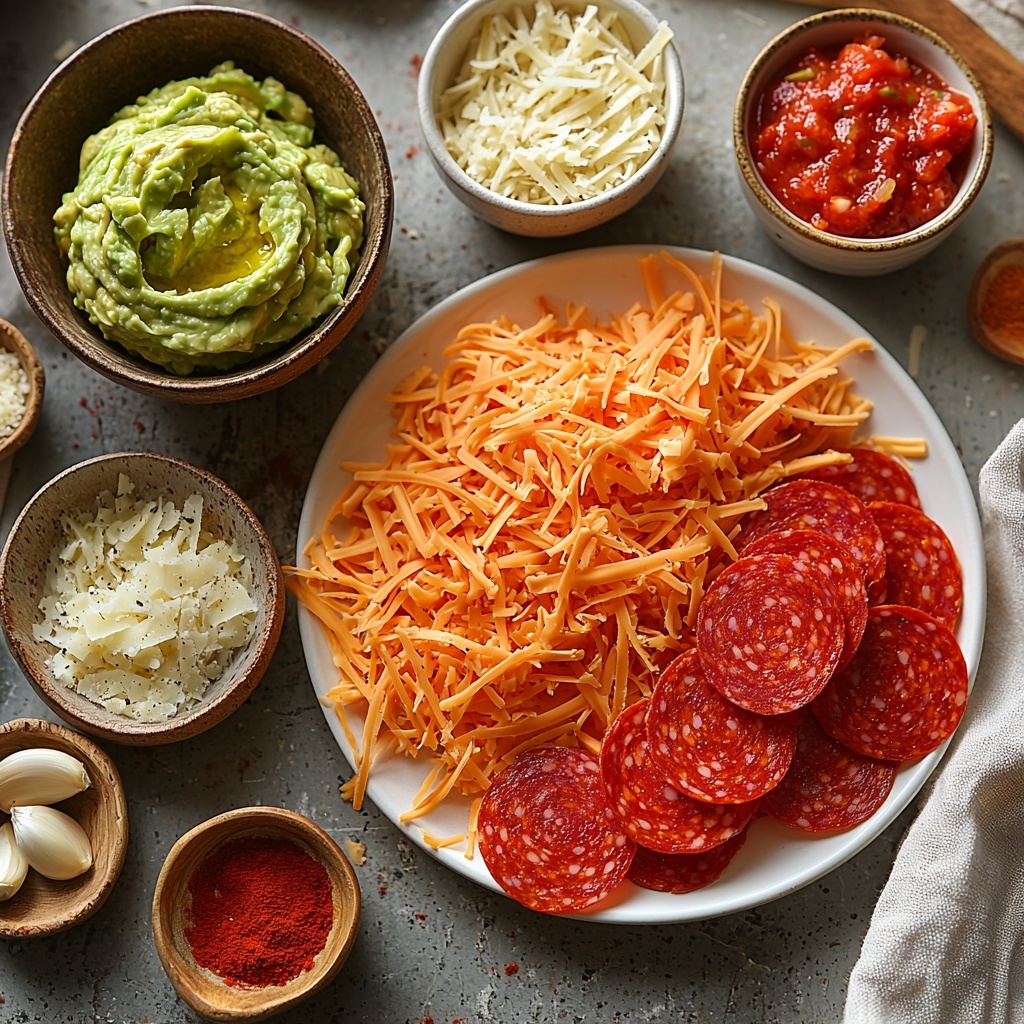 Keto Pepperoni Cheese Crisps are a crunchy, flavorful, and guilt-free snack perfect for low-carb and ketogenic diets. These cheesy crisps combine a trio of cheeses with spicy pepperoni and bold seasonings, baked to golden perfection. Served with guacamole and salsa for dipping, they make an irresistible appetizer or snack.