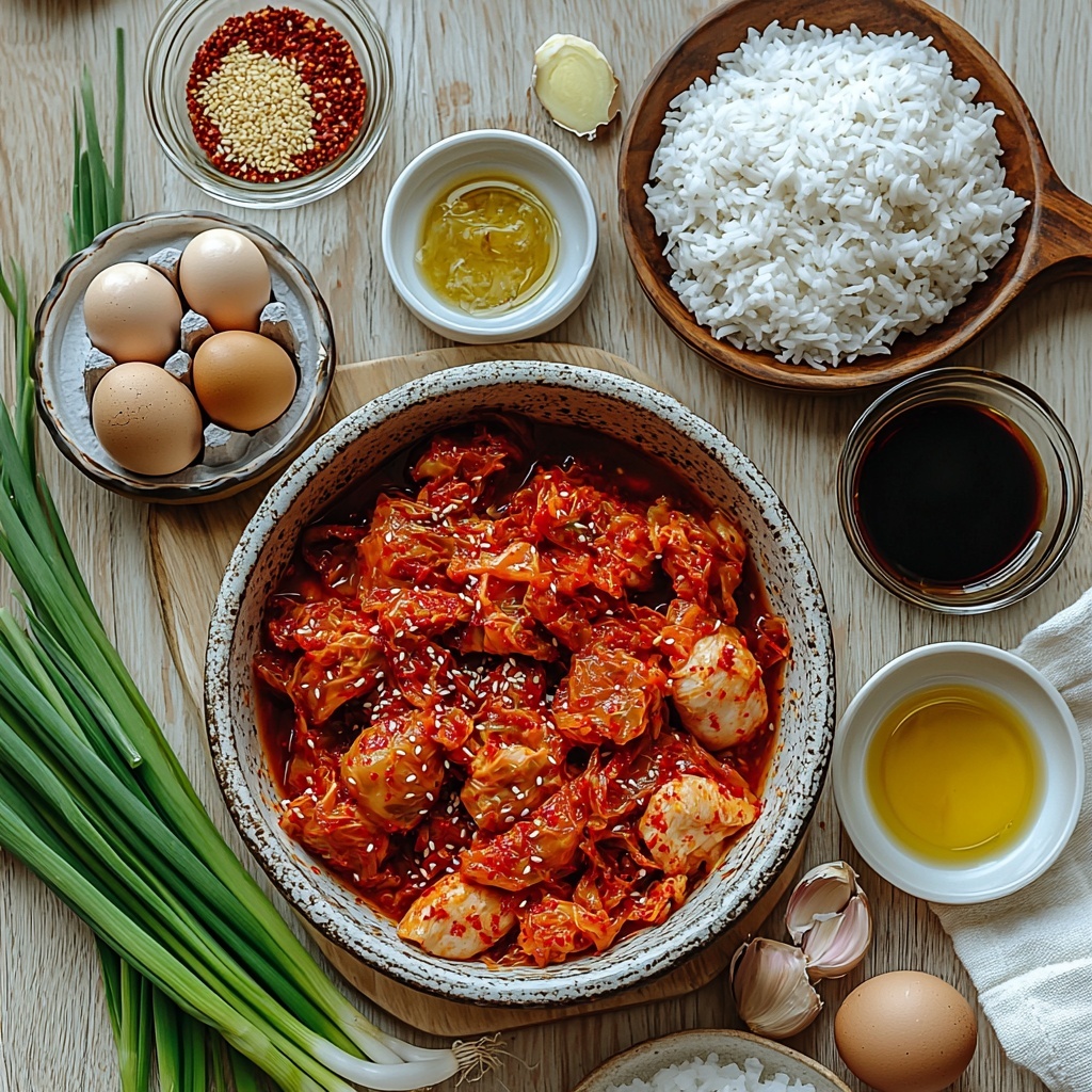 These simple but essential ingredients lay the foundation for the perfect balance of flavors, textures, and vibrant colors that make this dish so memorable. Each component plays its part, from the punchy fermented kimchi to the aromatic ginger and garlic that infuse every bite with a delightful depth.