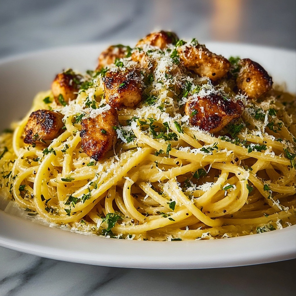 Now for the fun part: add the cooked spaghetti and shredded chicken back into the skillet with your creamy sauce. Toss everything gently but thoroughly until the pasta and chicken are fully coated in that luscious mixture. To serve it immediately, spoon it hot onto plates right from the pan. If you want a bubbly, golden-topped casserole, preheat your oven to 350°F (175°C) and pour the spaghetti mixture into a greased 9×13 inch baking dish. Sprinkle the top with shredded Monterey Jack cheese and crumbled bacon if you’re using it. Bake for 20 to 25 minutes until the cheese melts beautifully and is bubbly around the edges.