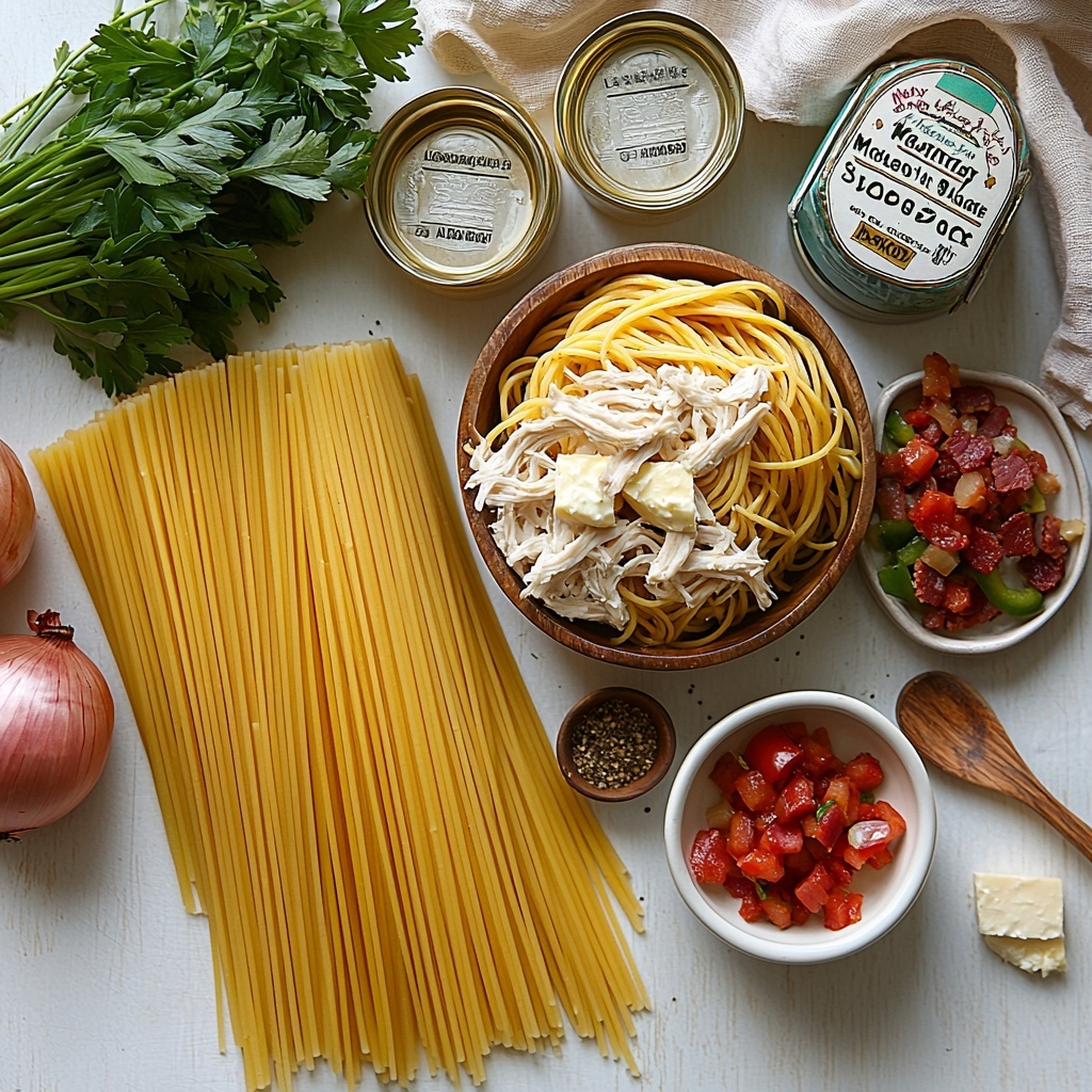 Every ingredient in this Monterey Chicken Spaghetti Recipe plays a crucial role in creating that perfect balance of creamy, savory, and fresh flavors. From the melt-in-your-mouth cheeses to the crunchy bell peppers, these components come together to make a dish that’s both hearty and satisfying.