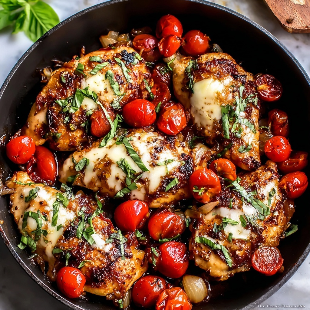 This One-Pan Balsamic Chicken recipe offers a flavorful and easy dinner option featuring tender chicken breasts roasted with a tangy balsamic glaze, cherry tomatoes, and baby potatoes. Perfectly balanced with a hint of honey and Dijon mustard, this dish combines sweet, savory, and tangy flavors in a wholesome, fuss-free meal cooked entirely in one pan for minimal cleanup.