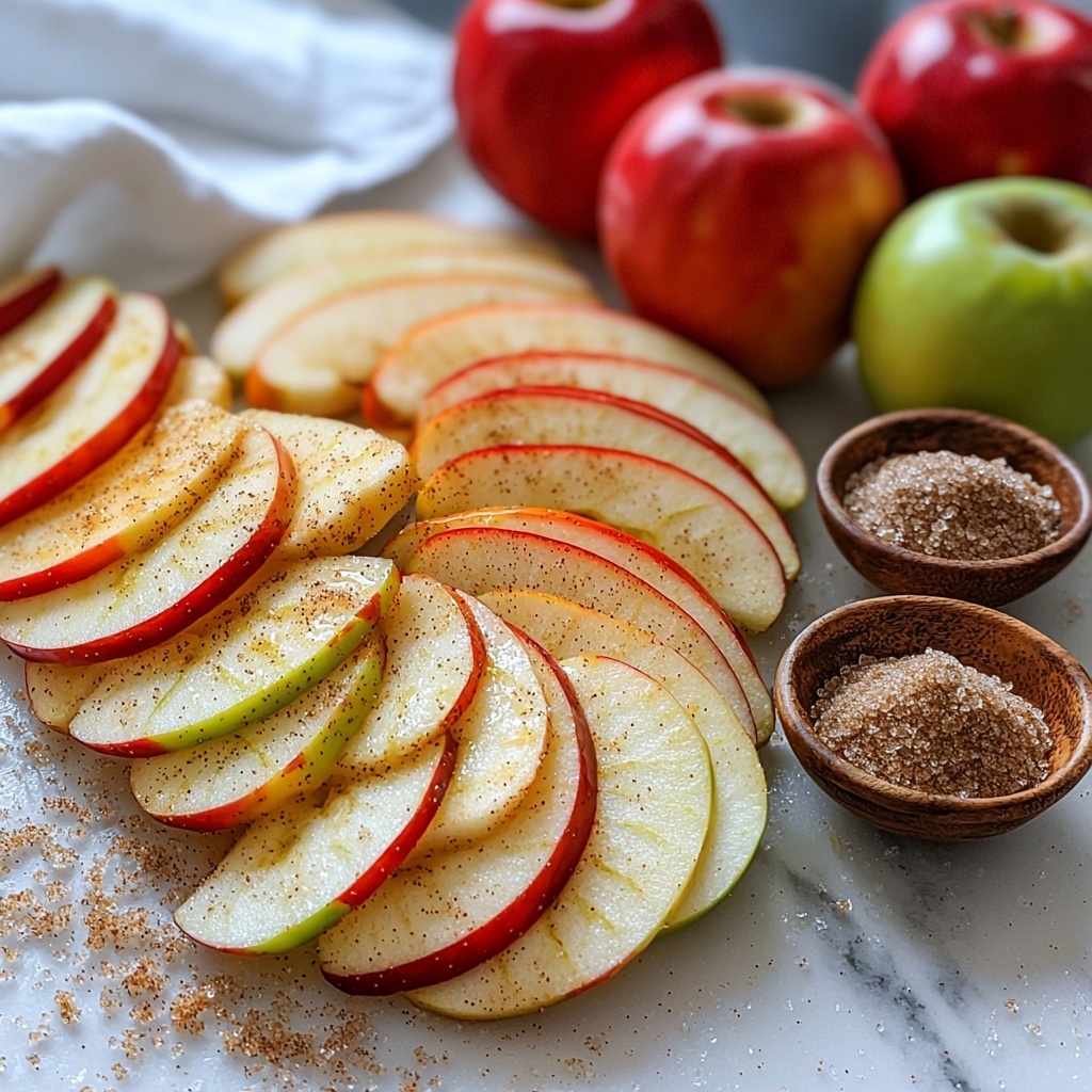 - Add Cinnamon Sugar (Optional): Sprinkle cinnamon sugar evenly over the apple slices if you like a sweet spice flavor. This step is optional and can be adjusted to taste.