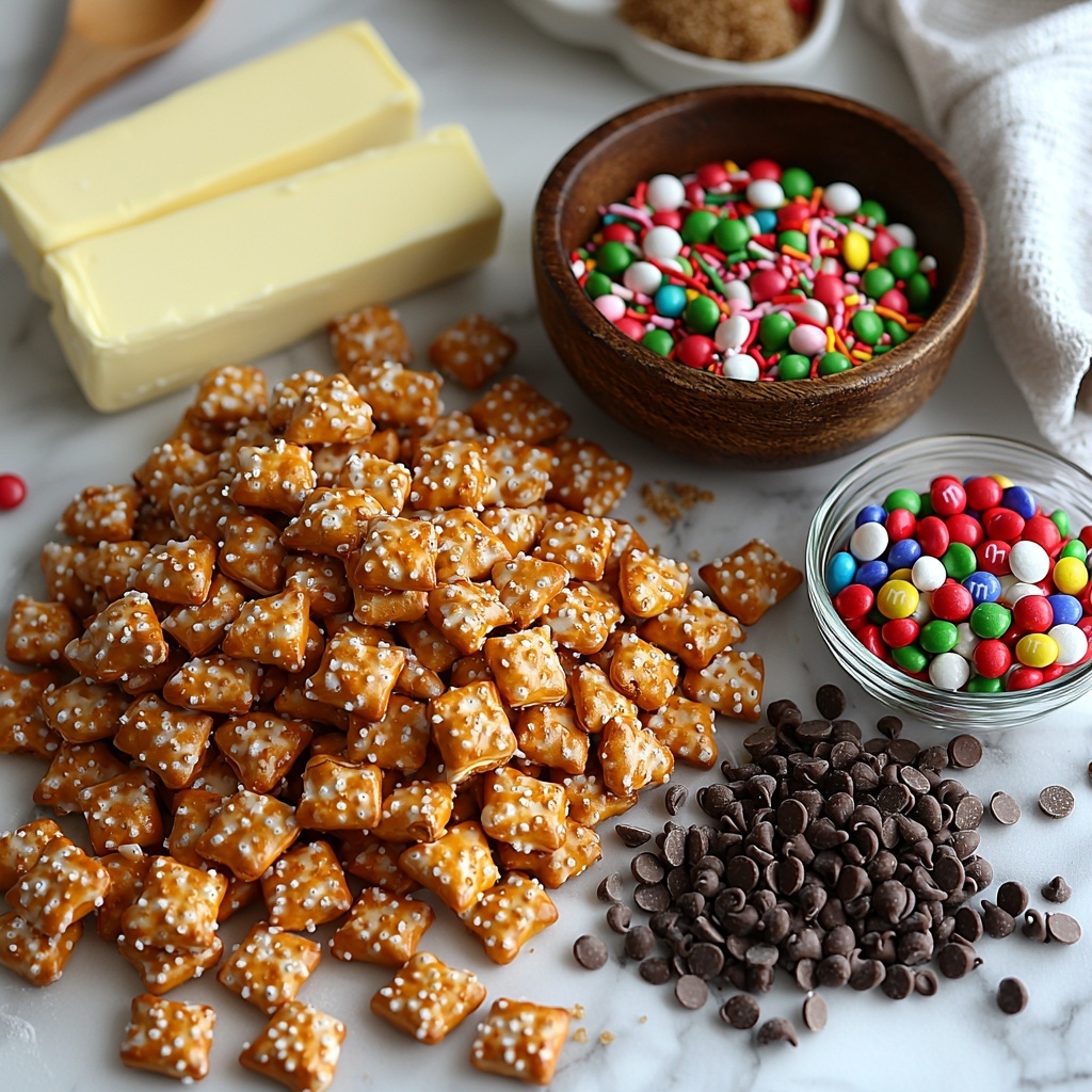 First things first, preheat your oven to 350℉ and line a rimmed 15″x10″ sheet pan with parchment paper or foil sprayed with cooking spray. Next, lay out your pretzel crisps in a single, even layer covering the entire tray. Don’t hesitate to gently break a few pretzels to fill any gaps — this ensures every bite has that perfect crunch.