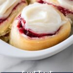 - Frost and Serve: Spread the cream cheese frosting generously over the cooled raspberry rolls. Serve and enjoy your delicious homemade Raspberry Sweet Rolls!