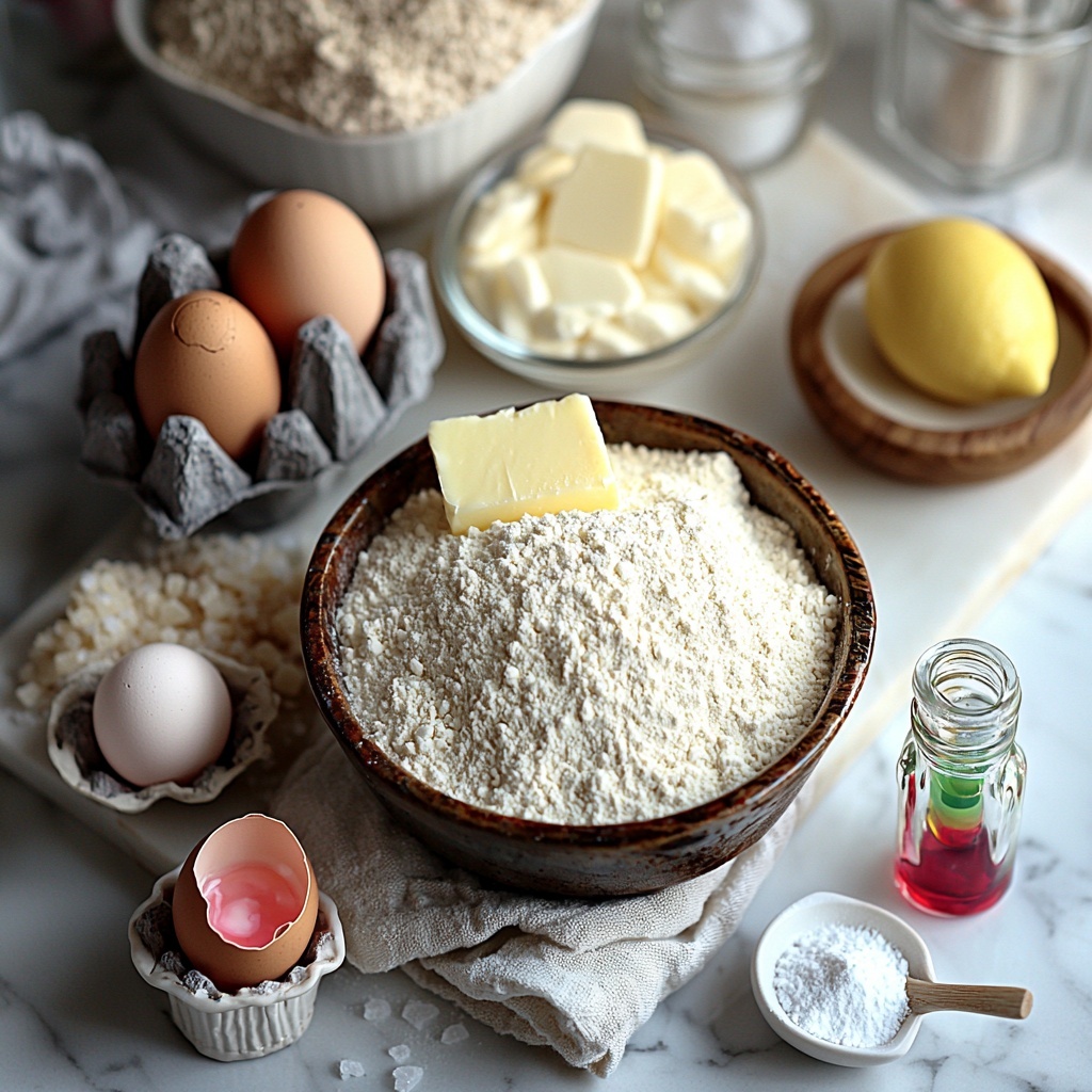 This recipe relies on a handful of simple ingredients, each bringing its own magic to the table. From the crisp texture provided by the flour to the gorgeous flower decoration made with colored icing, every component plays a vital role in crafting these elegant cookies.