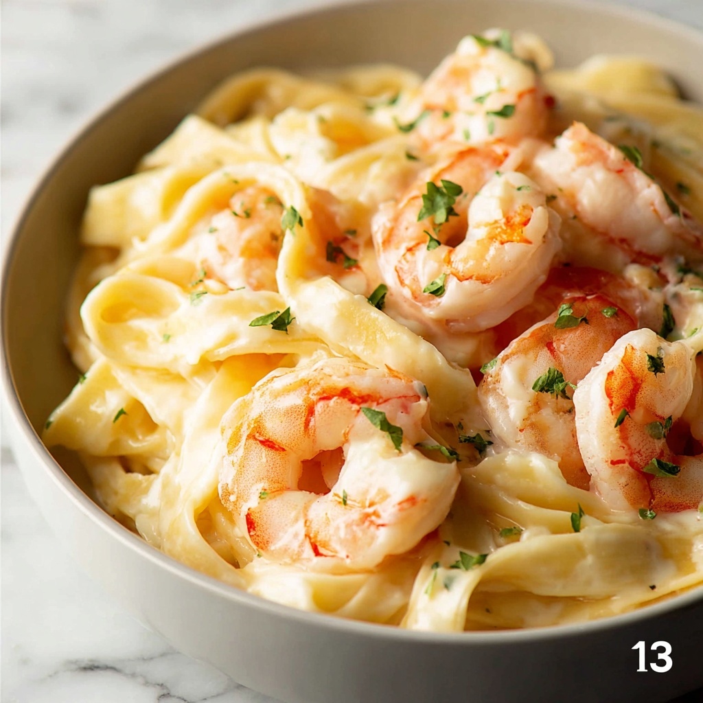 For a stunning presentation, serve the Shrimp Alfredo on warm plates with the shrimp artfully arranged on top. You can also nestle the pasta into individual bowls, add a parmesan crisp on the side, or garnish with edible flowers for a restaurant-style touch that will wow your guests.