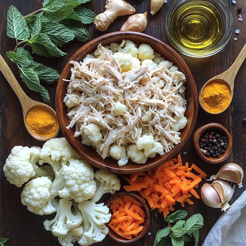 This wholesome and flavorful Shrimp Alfredo-inspired recipe offers a creamy, vegetable-rich chicken soup blended to perfection. Combining cauliflower, carrot, and aromatic spices with tender chicken, this comforting dish is quick to prepare in just 30 minutes and packed with savory goodness.