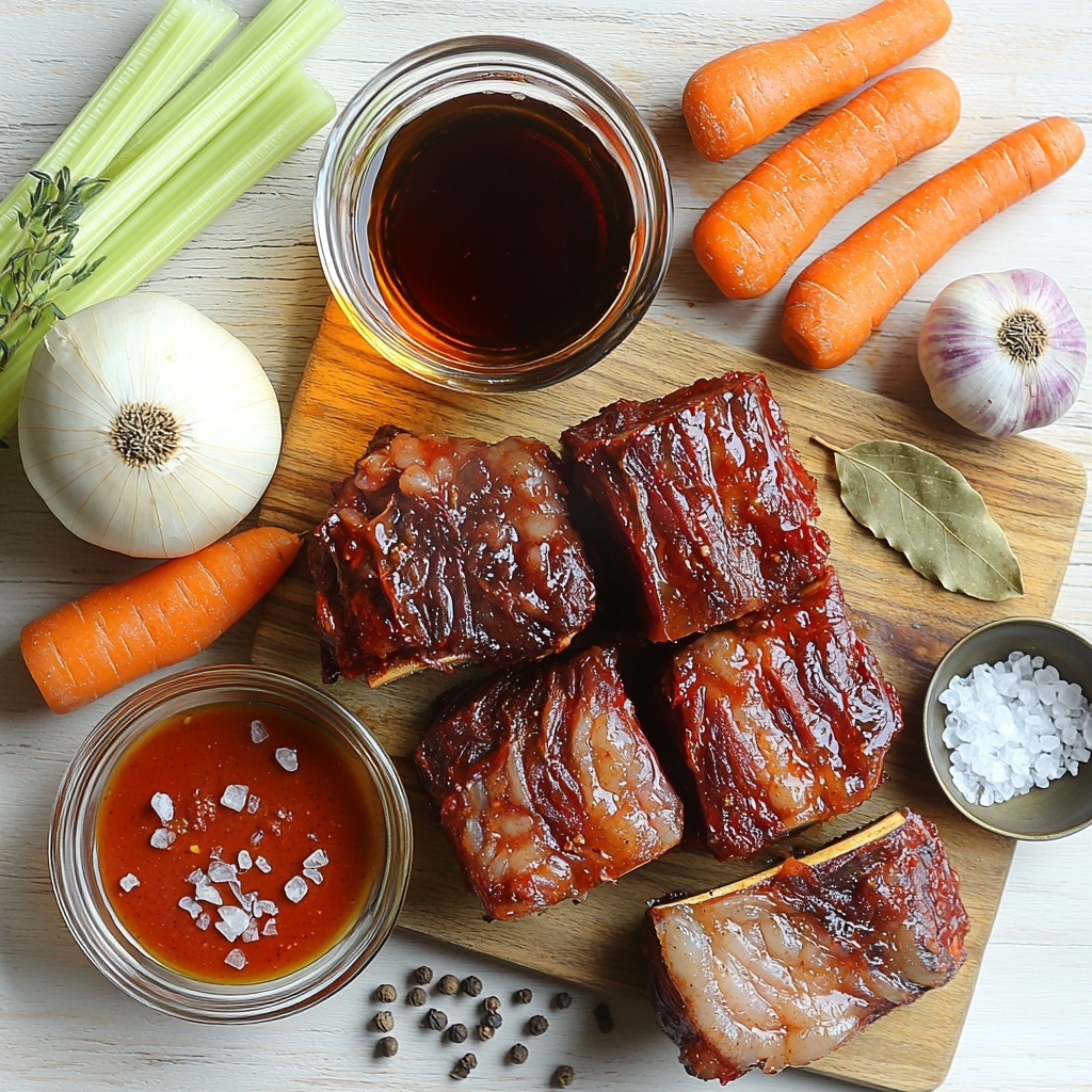 Each ingredient in this Slow-Cooked Braised Oxtail in Red Wine Recipe plays a vital role in building layers of flavor, texture, and aroma. From the richness of the oxtail to the freshness of the vegetables and the deep complexity of the red wine, these carefully selected components come together beautifully.