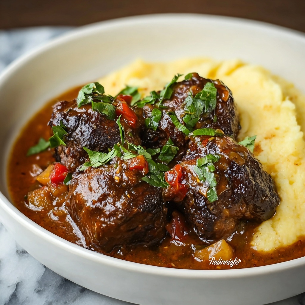 To elevate your Slow-Cooked Braised Oxtail in Red Wine Recipe, fresh herbs like chopped parsley or thyme sprigs add a burst of color and fresh aroma. A sprinkle of finely grated lemon zest can also brighten the rich flavors if you want a subtle citrus lift.