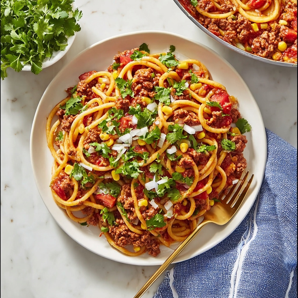 Try serving your Taco Spaghetti in colorful individual bowls to highlight its vibrant hues. Layer in a small glass baking dish, top with extra cheese, and broil for a crispy finish if you love a bit of crunch. For fun, wrap small portions in crispy taco shells as a fusion handheld alternative. However you choose, this recipe is as versatile as it is delicious!
