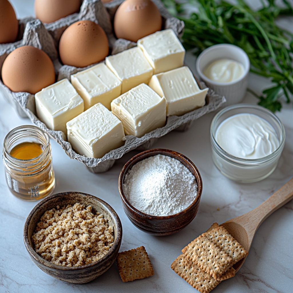 These ingredients are simple yet essential, working together to build the cheesecake’s signature creamy texture and rich flavor. Each component plays a crucial role, from the crunchy crust base to the smooth, tangy filling that sets this Tall and Creamy New York Cheesecake Recipe apart.