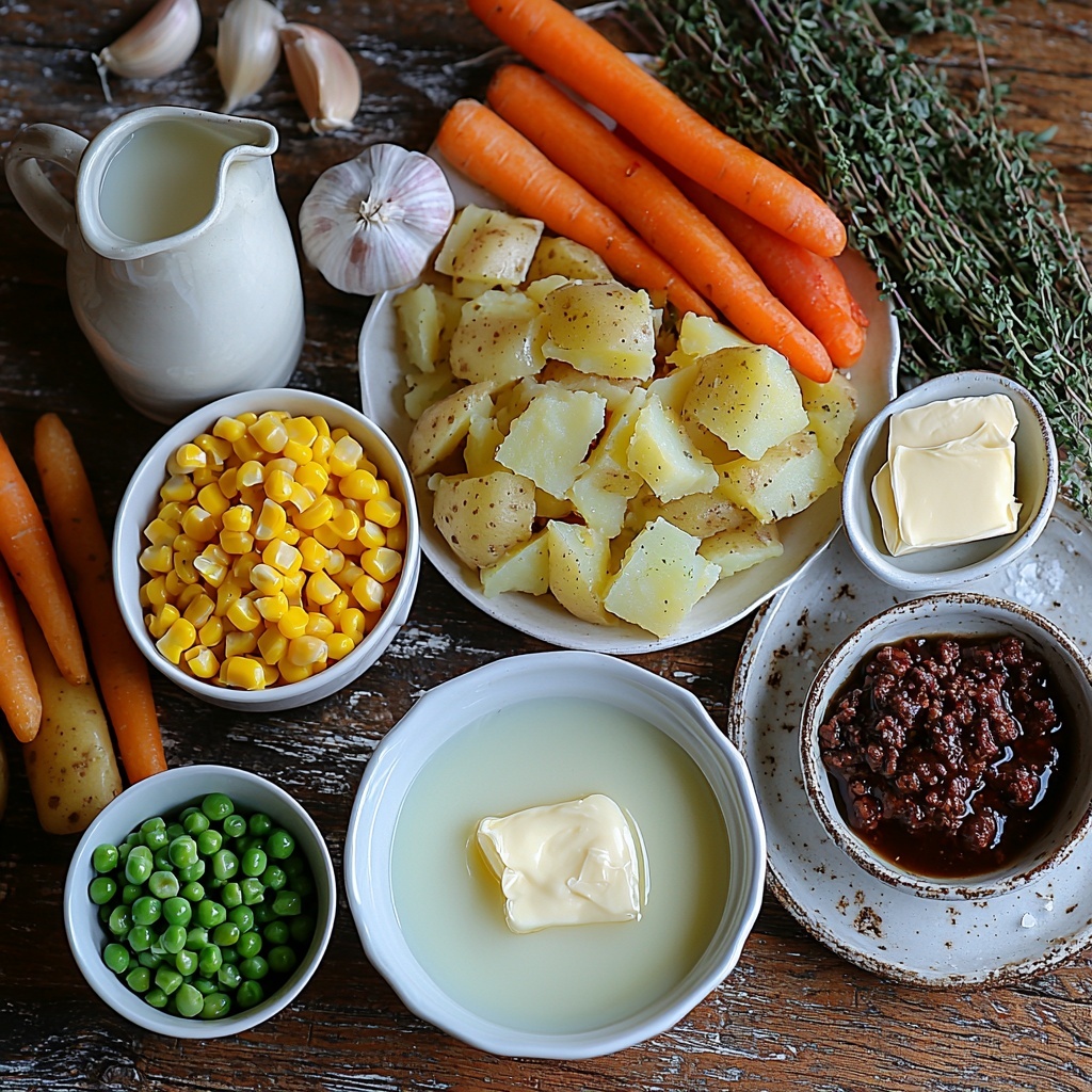Begin by peeling and chopping the russet potatoes, then boil them until soft and ready to mash. While the potatoes cook, dice your onion, carrots, and mince the garlic so they’re ready to go. Once potatoes are tender, mash them with butter and warm milk for that silky smooth texture, then keep them warm while you finish the filling.