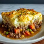 A classic Traditional Shepherd’s Pie featuring a hearty ground lamb or beef base layered with sautéed vegetables, rich gravy, and topped with creamy mashed potatoes baked to golden perfection. This comforting dish is perfect for family dinners and serves 10 generously.