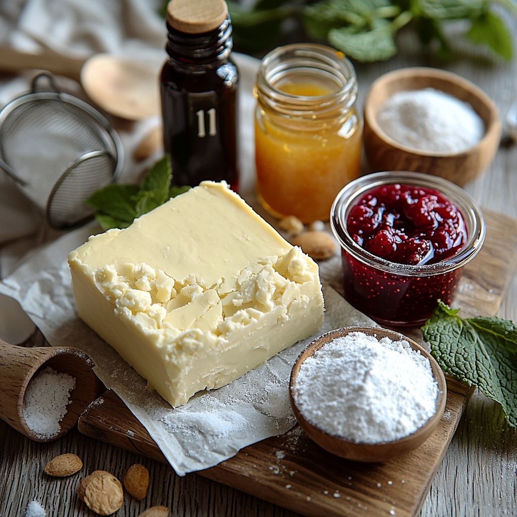 - 150 g raspberry jam (or strawberry jam *note 2): The jewel-like filling that offers fruity brightness.