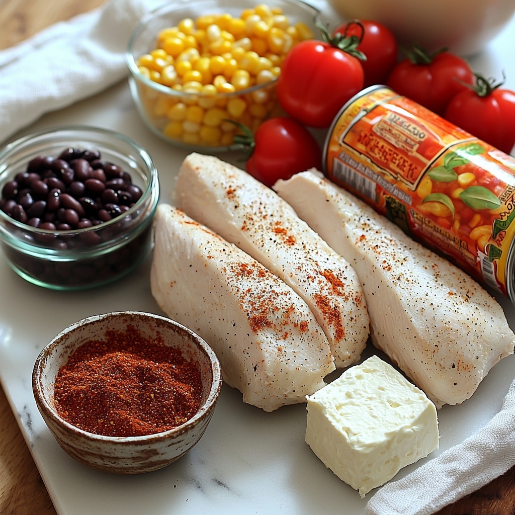 The magic of this chili lies in a handful of simple but essential ingredients that work together to create a perfect balance of flavor and texture. Each element plays its role – from the tender chicken breasts to the creamy tang of cream cheese, and the bright pop of Rotel tomatoes – ensuring every spoonful is a delight.